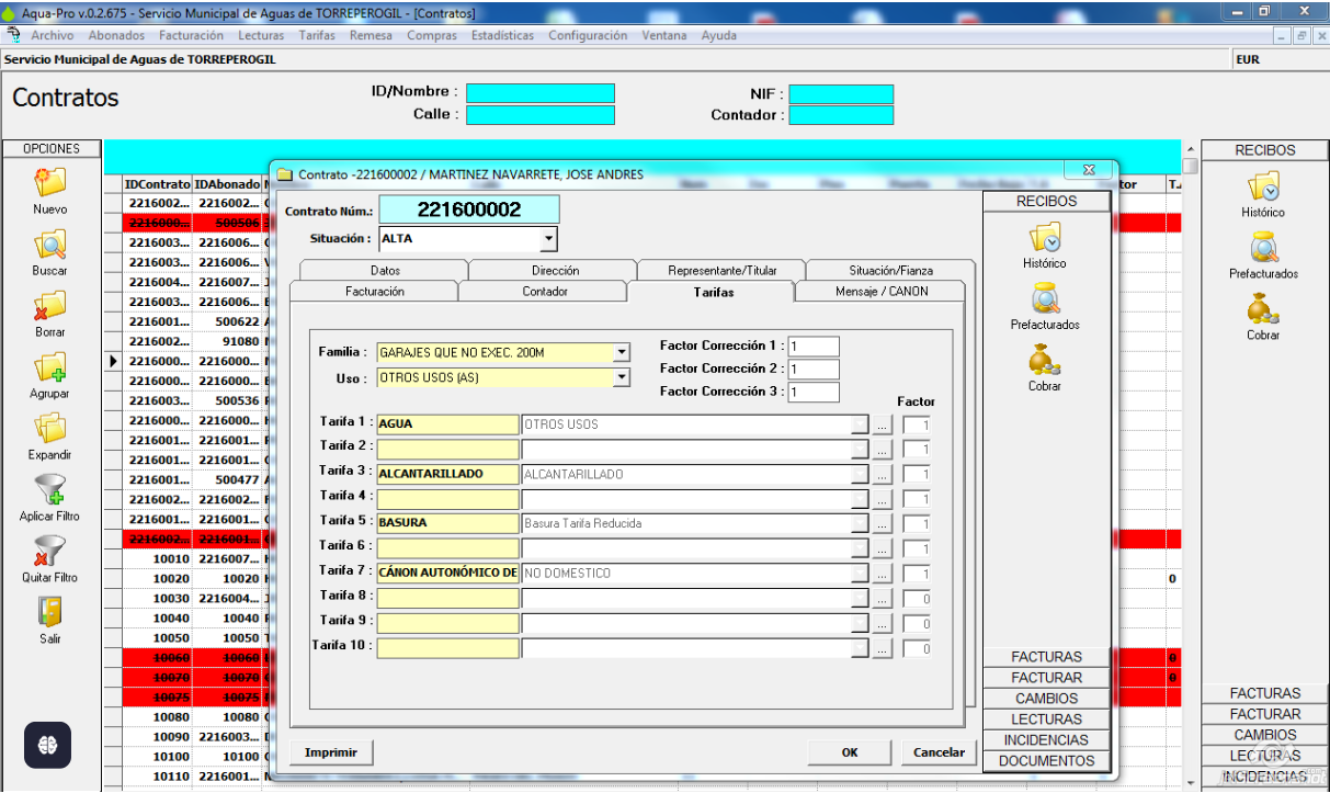 - Tarifas personalizadas a nivel de contrato (factores de corrección, bonificaciones, etc.).
